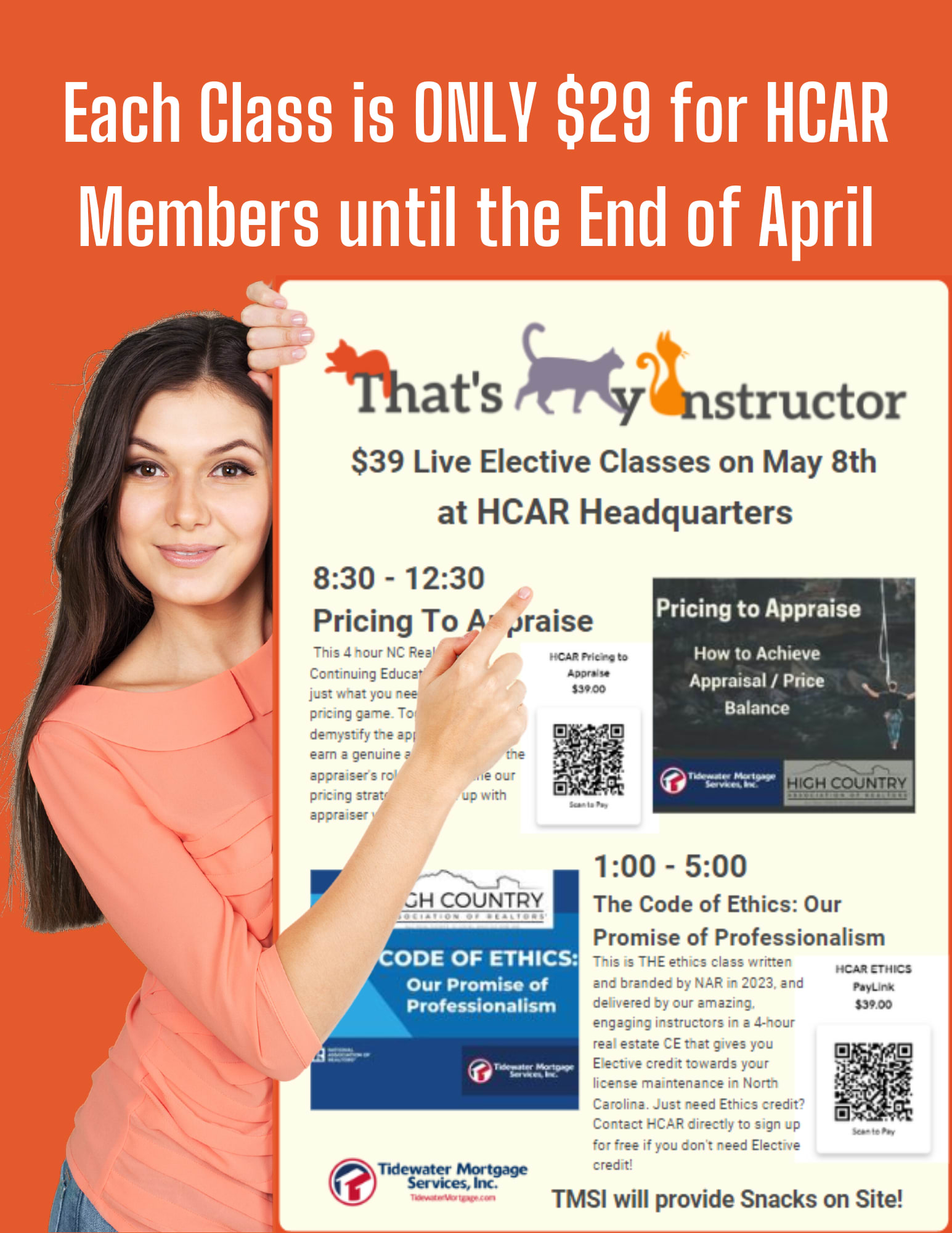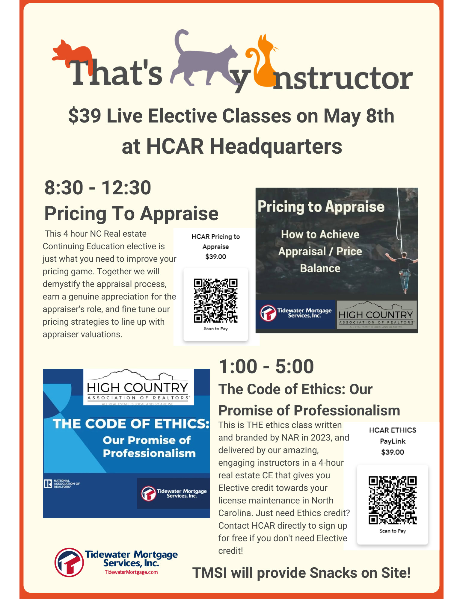 Join us Wednesday, May 8th at 1:00 pm for a live session of The REALTOR® Code of Ethics at HCAR headquarters in Boone, NC. This is THE ethics class written and branded by NAR in 2023, and delivered by our amazing, engaging instructors in a 4-hour real estate CE that gives you Elective credit towards your license maintenance in North Carolina.